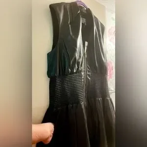 Anthropologie Tommie Cap-Sleeve Smocked Front-Zip Shirt Dress: Faux-Leat…