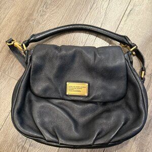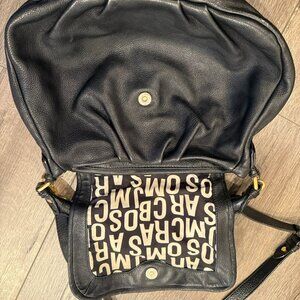 marc by marc jacobs hobo, black leather shoulder bag, everyday crossbody, mbmj bag, logo lining, classic q style