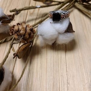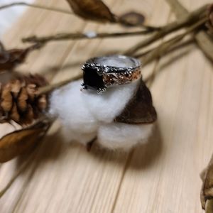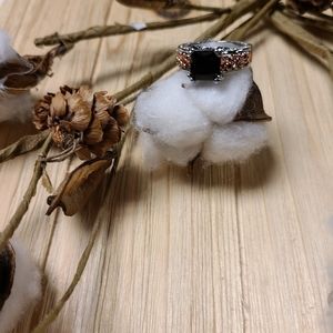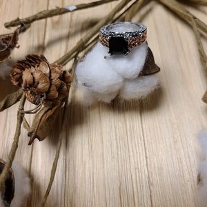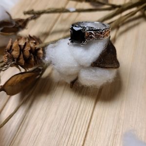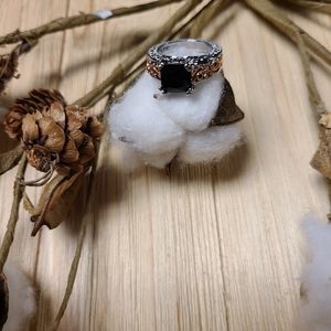 Exquisite Black Stone Ring with Rose Gold and Silver Accents