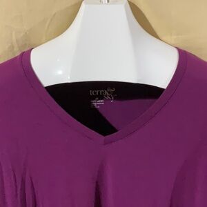 Terra & Sky Size 3X Purple Long Sleeve Tee Shirt. In great shape. Made of 58% cotton, 37% modal and 5% spandex. Length is approximately 27-1/2” and across the chest laying flat is approximately 30”.