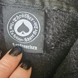 Classic Thrasher hoodie with iconic label. Perfect for skate enthusiasts.