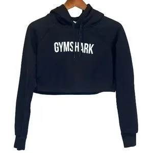 (Sold) Gymshark Cropped Pullover Hoodie-Black-Spellout Graphic-Small