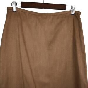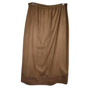 Vintage faux suede embroidered skirt dark caramel brown 10 petite western boho