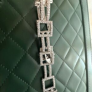 This stunning silver bracelet features a unique geometric design, perfect for adding a touch of elegance to any outfit. Its intricate detailing and shimmering finish make it a must-have accessory. 7.25inches long.! Stamped 925 and a hallmark.