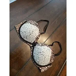 Victoria's Secret Very Sexy Strapless Cheetah Print Bra 36c Brown Black White