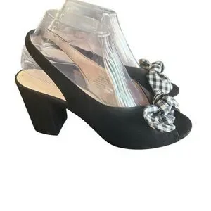 Nine West Gaerwen Gingham Bow Front Slip Back Black Heels Size Womens 8