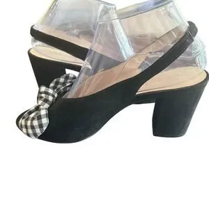 Nine West Gaerwen Gingham Bow Front Slip Back Black Heels Size Womens 8 Pre-owned Great condition