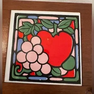 Vintage Wooden cheese Tray with fruit Tile Inlay