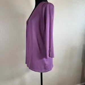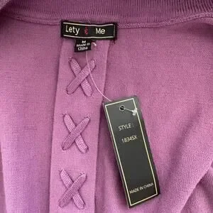 NWT Lety & Me Open-Front 3/4 Sleeves Back Detail Stitch Fix Purple Cardigan M