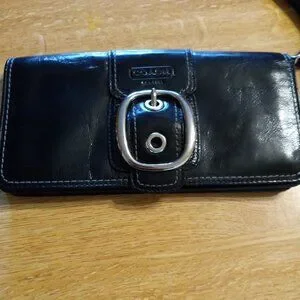 AUTHENTIC COACH Leather Large Wristlet w Buckle Wallet Clutch