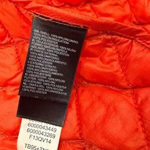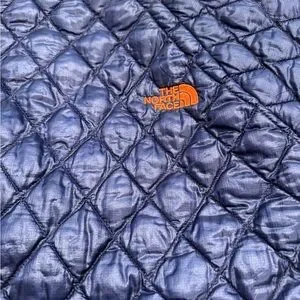 Navy jacket with bold orange detailing by The North Face. Features iconic logo detailing.