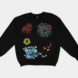 - Custom positive vintage graphics on the front, back, and sleeves