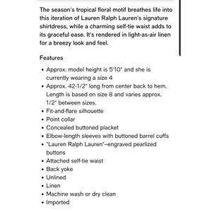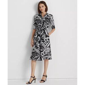 EUC!! Crafted from 100% linen, this Lauren Ralph Lauren midi dress combines elegance and comfort. The fit-and-flare silhouette and tropical floral motif offer a sophisticated look, while the concealed button placket and elbow-length sleeves with buttoned cuffs add refined detailing. Ideal for warm weather, this dress provides a polished yet relaxed style. * Style# LRL SU23