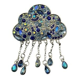 This stunning brooch features a cloud design adorned with blue and silver accents. Perfect for adding a touch of elegance to any outfit.