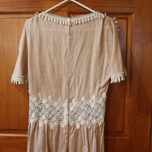 Elegant vintage piece with a refined, feminine feel. This 1960s Lillie Rubin dress features a soft dusty pink tone enhanced by delicate lace along the waist, neckline, and sleeves, creating a graceful and timeless silhouette. The high neck adds classic structure while the flowing maxi length brings ease and movement. Its linen fabric offers a natural, breathable quality perfect for collectors who adore romantic styling and era-driven charm. Beautiful for vintage events, photography, or display, this dress blends understated detailing with enduring sophistication, making it a lovely statement option for curated wardrobes.