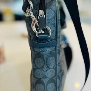 Authentic Coach laptop bag. Grey monogram, waxed canvas leather outer. Padded sleeve for laptop inside. Can use either handles or crossbody strap.
