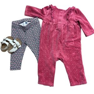 Janie and Jack Winter Bundle Lot 3-6 Mo Pink Velvet Romper and Leggings
