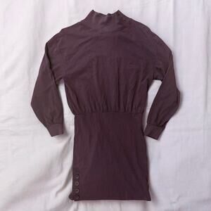 Lisa Mini Dress in fig jam with mock neck, dropped-shoulder sleeves, drop-waist, and button vent at hem