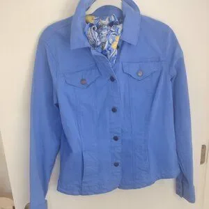 Charter Club Cornflower Blue Fitted Stretch Denim Jacket - Like New