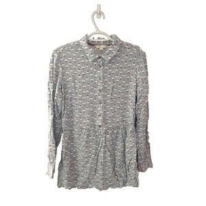Boden Gray Floral Long Sleeve Peplum Top US Woman's Size 6R/UK10R