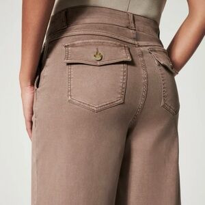 Spanx Stretch Twill Taupe Cropped Wide Leg Pants, Size L