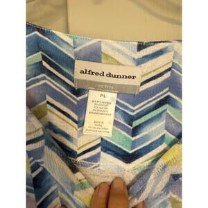 Alfred Dunner PL "High Impact" Blue Watercolor Border Knit Top Blouse