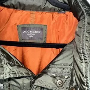 Stay warm without the bulk in this Dockers lightweight puffer jacket in a versatile olive green. Designed for both men and women, this unisex size large coat is perfect for layering, travel, or daily wear. With its quilted design and lightweight insulation, it offers comfort, style, and functionality all in one.