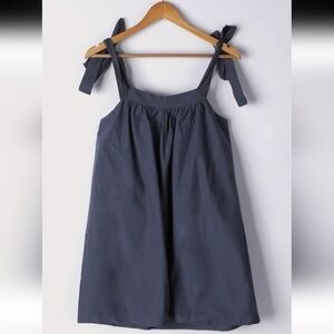 Lulus Exclusive! Take on a cute new style with the Lulus Absolutely Darling Dark Blue Tie-Strap Mini Dress! Woven cotton shapes this dreamy dress that has wide tying straps and a straight neckline. The relaxed babydoll-inspired silhouette has light gathering at the neck and flows down to a mini hem.