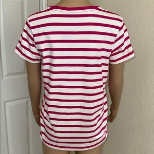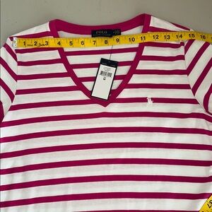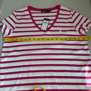 NWT RALPH LAUREN Pink and White Striped Tee Size M.