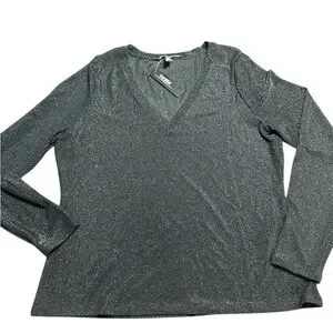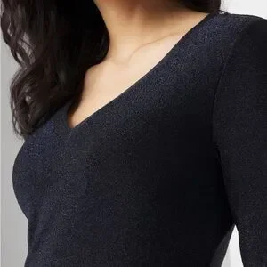 White House Black Market Black Long Sleeve Sparkle Knit Top