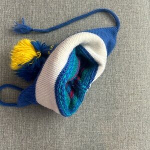 Vintage Marceau Sports 100% Wool Beanie Hat Pompom Blue
