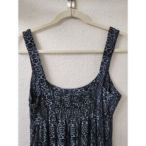 FRESH PRODUCE Dress Womens L Maxi Navy Blue Smocked Jersey Knit Sundress Resort