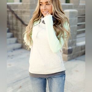 AMPERSAND AVE Baseball DoubleHood Sweatshirt Hoodie Mint and Gray Size Large