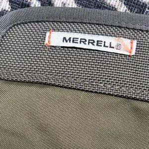 Merrell bag with a textured gray design. Features a bold red logo accent and multiple interior pockets. Some wear see pictures.