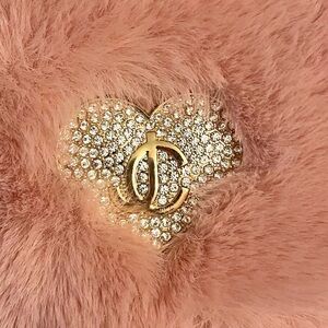 Juicy Couture Pink Sparkle Bling Heart Faux Fur Warm Headband Accessory