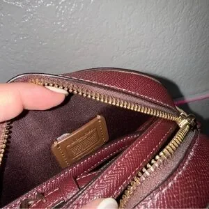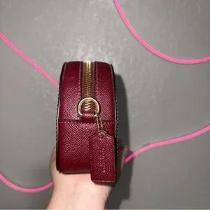 Chic and compact Coach crossbody. Rich wine red leather. Ideal for daily use.