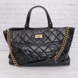 Chanel 2 Way Tote Black Glazed Calfskin Leather Shoulder Bag