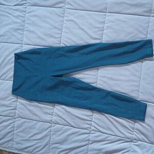 Stylish teal high-waisted leggings. Perfect for workouts or casual wear.