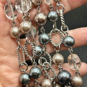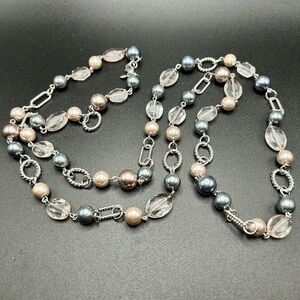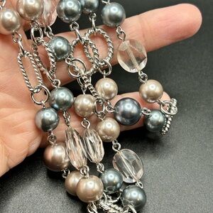 L21 Premier Designs Long silver tone blue pink Necklace