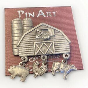 Pewter Farmhouse Pig Chicken Cow Spoontiques Pin Art Brooch 3923 Vintage
