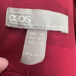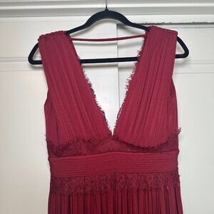 ASOS Burgundy Lace Insert Pleated Slit Maxi Dress 8