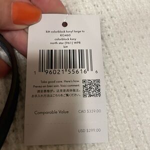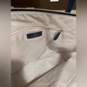 Chic and versatile tote from Kate Spade. Features a sleek design with ample space. Light blue with navy blue straps. New with tags.