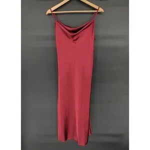 Bebe Satin Slip Dress Size S Burgundy Cowl Neck Midi Y2k Dance Prom Evening Date Night Formal Wedding Guest Special Occasion Romantic Vampire