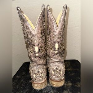 Corral Vintage Jessica Western Cowgirl Boots Brown Inlay Leather Studs Size 7