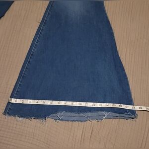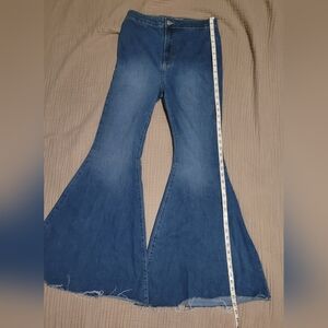 We the Free extreme flare jeans are a dramatic 70s-inspired bell bottom flare design fitted through the thigh and flare out significantly from the knee. They have a good amount of stretch to them and are high waisted. They also have raw frayed hems to give that lived in look. These jeans are in excellent pre-owned condition, and I'm open to reasonable offers!