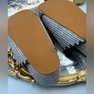 🆕 LOEFFLER RANDALL 🧿 NWOB Theo Embroidered Raffia Platform Sandal, Blue Sz 7.5