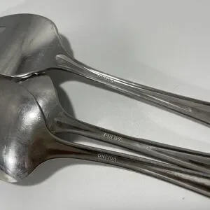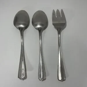 Including 2 serving spoons - 8.25 inches & 1 meat fork - 8.5 inches. Pet free smoke free household.