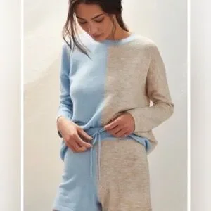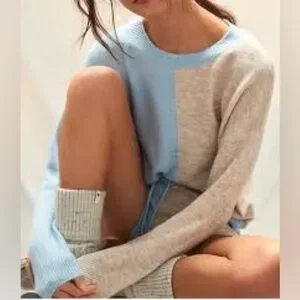 Like new! Anthropologie Saturday Sunday two piece sweater short set in blue/gray color blocks, both size medium. Cute and so cozy!