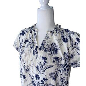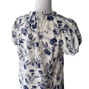 Doe and Rae floral print ruffle v-neck blouse in ivory Small