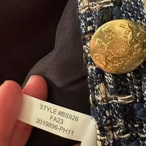 ⭐ Classic tweed jacket in navy/cream with luxe gold-tone buttons